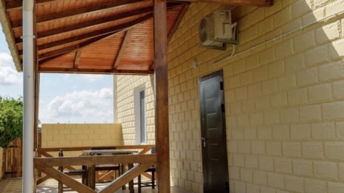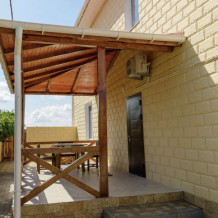 В гостевом доме 4 двухкомнатных квартиры, две на первом этаже с индивидуальными террасами, и две на втором этаже. На территории гостевого дома террасы, беседка, зоны барбекю, детский уголок, парковка на закрытой территории.