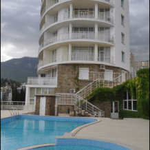 Жилой комплекс находится в живописнейшем месте Южного берега Крыма - в посёлке Гурзуф. Аренда 1-комнатной квартиры, до 6-ти спальных мест (без животных) в новом доме с бассейном, с боковым видом на море и на скалы Адалары.