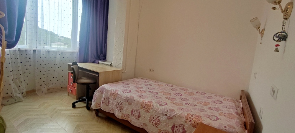 Квартира находится в живописном месте Средней дороги поселка Гаспра. Располагается в спальном районе. Все окна с панорамным видом на море. 4 супермаркета рядом, аптека, овощи и фрукты по доступным ценам.