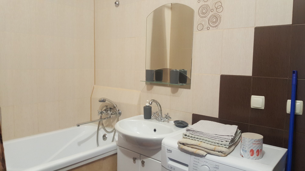 Комфортная ванна, стиральная машина. Кондиционер избавит Вас от жары, а вечерний отдых вам украсят кровать, 2 дивана, телевизор с Т2 каналами и интернет с Wi-Fi.