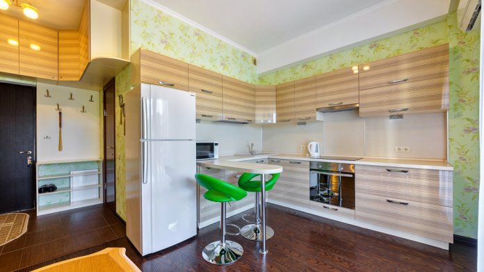 Просторная кухня оборудована новым кухонным гарнитуром, бытовой техникой: холодильник, посудомоечная машина, варочная панель, духовой шкаф, микроволновая печь. Из мебели: мягкий диван (раскладной), двухспальная кровать, ЖК-телевизор, шкаф для одежды, журнальный столик. Санузел совмещенный (душевая кабина). Установлена стиральная машина-автомат. Предоставляется постельное белье, а так же имеется вся необходимая посуда. В апартаментах выполнен качественный евроремонт в спокойных пастельных тонах. Вся мебель и бытовая техника новая. Закрытая территория. В апартаментах имеется два балкона, откуда открывается великолепный вид на прилегающий парк.