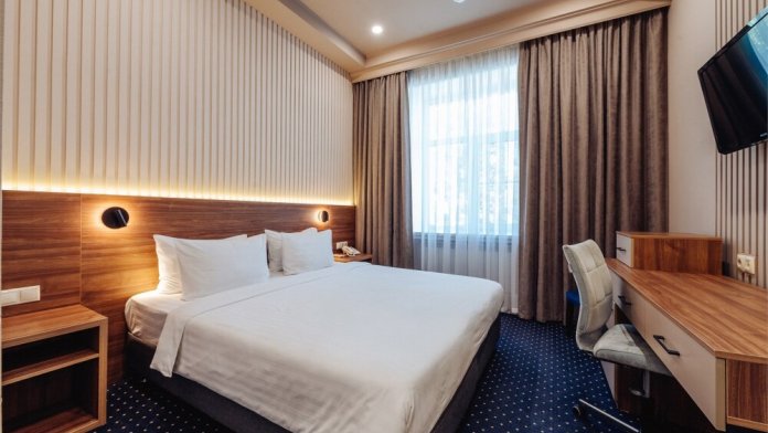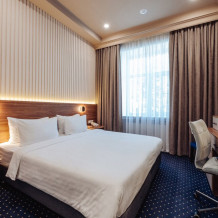 Уют и комфорт. Располагайтесь в одном из номеров 4-звездочного отеля - в Вашем распоряжении 78 вариантов: от категории «Стандарт» до «Президентский люкс», где есть все необходимое для проживания и отдыха после долгой дороги. Приветливый персонал обо всем позаботится, в любой момент можно обратиться к администратору.