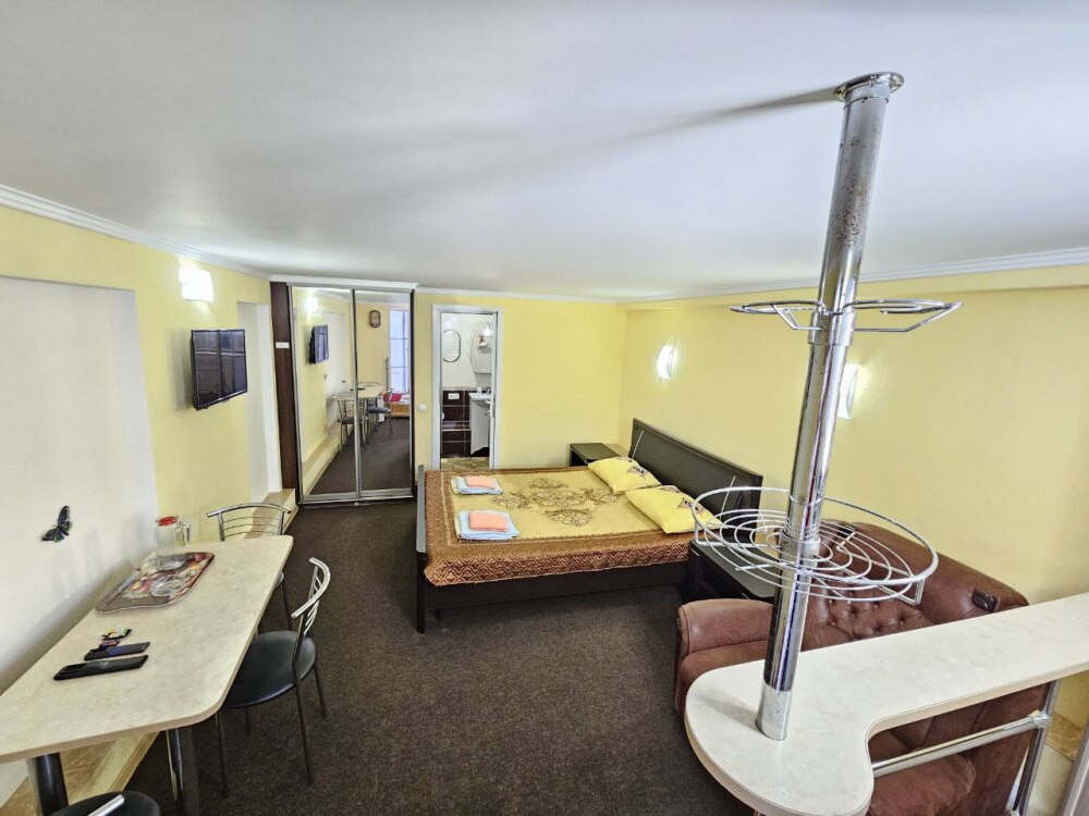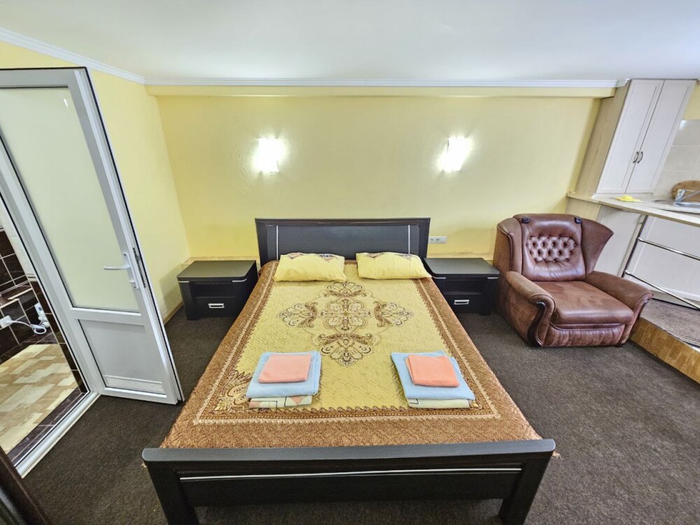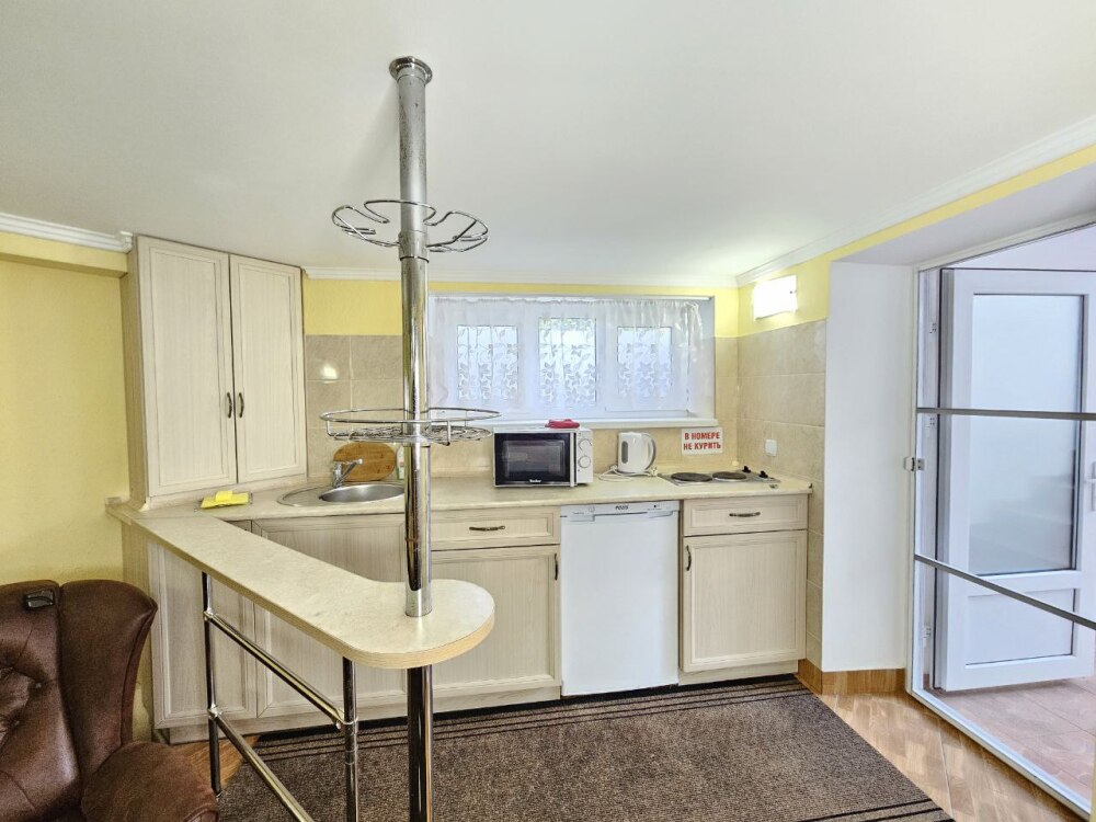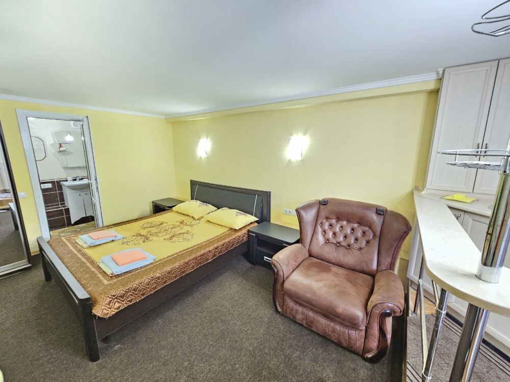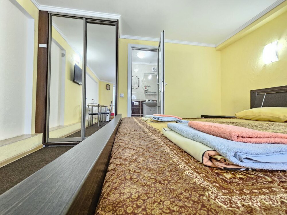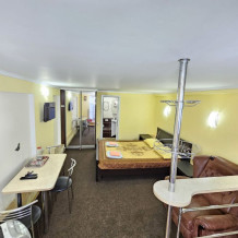 Однокомнатные апартаменты, расположенные в цокольном помещении. Рассчитаны на комфортный отдых до трёх человек. Комфортное и уютное помещение со всеми удобствами. В апартаментах расположены: кухня, санузел с душевой кабинкой, холодильник и телевизор, кондиционер. Так же в бесплатное пользование предоставляется спутниковое телевидение, Wi-Fi.