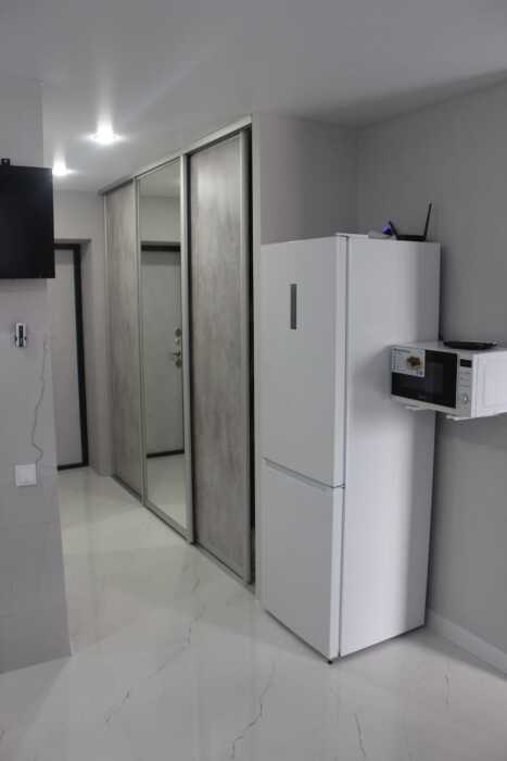 Планировка квартиры зонирована на кухню-гостиную (как студия) и отдельная комната - спальня. Вся необходимая техника (2 телевизора, холодильник, варочная панель, электрочайник, пылесос вытяжка, бойлер, кондиционер, утюг, фен, стиральная машина). Спальные места: 2-спальная кровать, диван и кресло раскладывается. Также предоставляется посуда, постельное белье, полотенца, тапочки, средства гигиены, гладильная доска, сушилка белья. + wi fi.
