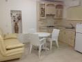 В номере есть кухня с посудой, шкаф-купе, тумбочки, шкаф, комод с зеркалом, стол со стульями.