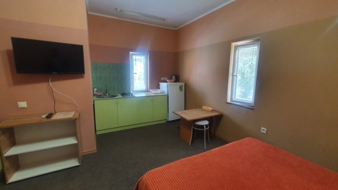 Номер оборудован кухней для самостоятельного приготовления еды. К каждому номеру прикреплена беседка во дворе гостевого дома.