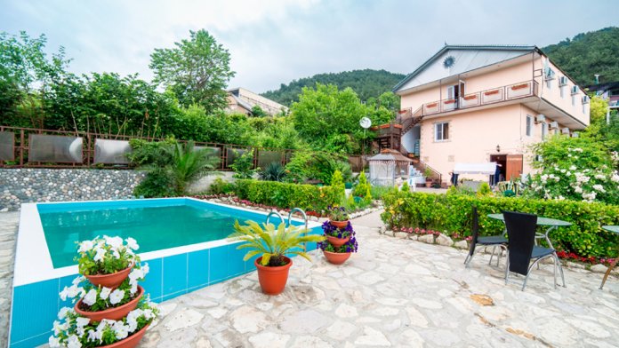 Гостевой дом «Sauchi» находится в 50 метрах от Черноморского побережья, в живописнейшем месте у Белых скал в Абхазии.