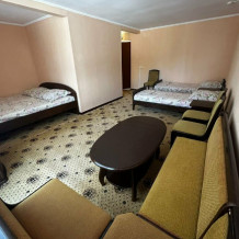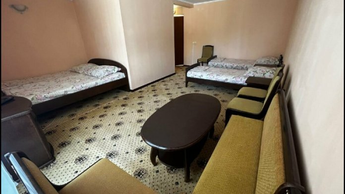 Стандартный четырехместный номер с одной двуспальной и двумя односпальными кроватью, или четырьмя односпальными кроватями и балконом. Во всех номерах, сплит, холодильник, телевизор, санузел.