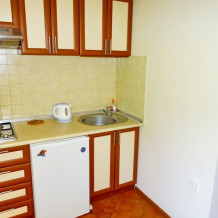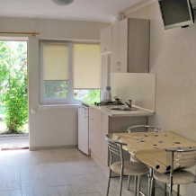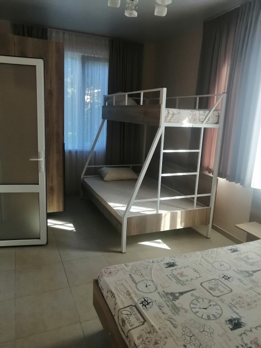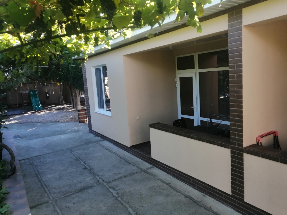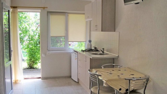 Номера на 1 этаже в отдельном домике на территории гостевого дома. Вход отдельный в каждый номер. Номер полностью укомплектован для комфортного отдыха. На собственной кухне есть всё необходимое.