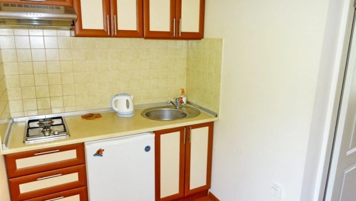Все номера просторные, светлые. В каждом номере есть всё необходимое для уютного отдыха: собственная кухня с набором посуды, кондиционер. Есть большой балкон со столиком, где можно отдохнуть на свежем воздухе. Вид сверху на прекрасный сад с фруктовыми деревьями