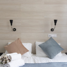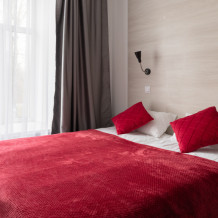 В распоряжении гостей: ванная комната (душ/туалет/раковина), двуспальная кровать или 2 односпальные (по запросу), необходимые косметические и гигиенические средства (шампунь, мыло, гель), комплект домашнего текстиля, телевизор, холодильник, фен, прикроватные светильники, розетки у изголовья, шторы блэк-аут для комфортного сна.
