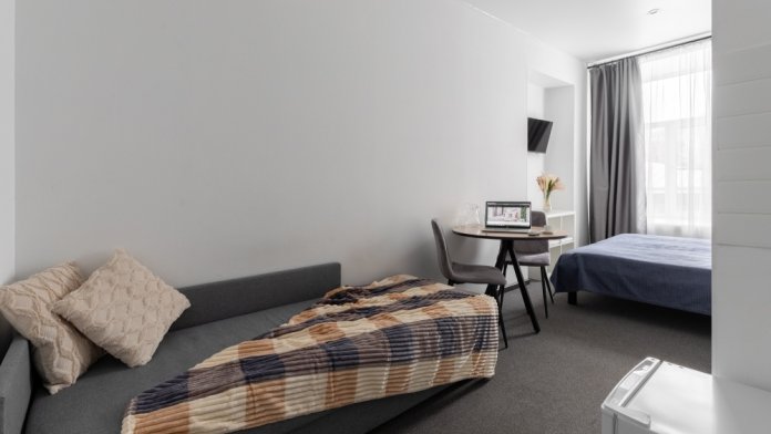 Уютный однокомнатный номер от 13 кв.м., без окна, оборудован всем необходимым для комфортного проживания.
