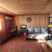 Семь спальных мест (2+1+1+1+1+1). Возможно дополнительное спальное место. Просторная кухня со всей необходимой посудой и техникой. Душевая кабина, санузел. Каждая комната оборудована спальными местами с подушками и одеялами, постельным бельём. Имеется сплит система. Проведен wi-fi. До моря 20метров.