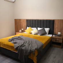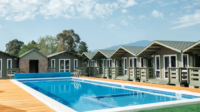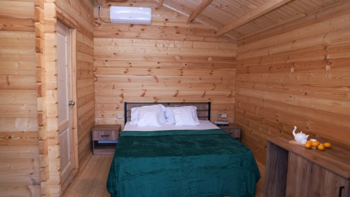 На нашей территории 28 индивидуальных домиков, оформленных в современном стиле, с удобной и новой мебелью, а также всеми удобствами в самом домике.