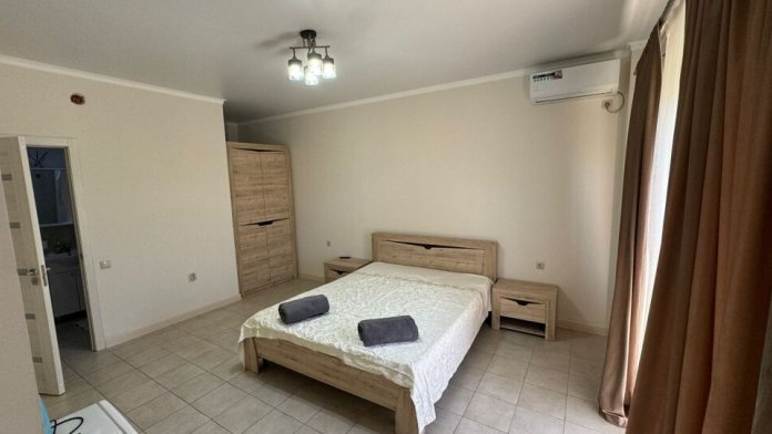 В номере есть кондиционер, телевизор, Wi-Fi, мини-бар, чайник, санузел (туалет, душ), полотенца и фен. Для гостей представлена общая кухня со всеми принадлежностями, стиральная машина, место для отдыха (пуфики и столики), детский бассейн, мангальная зона, открытая и закрытая парковка с видеонаблюдением. Питание самостоятельное.