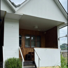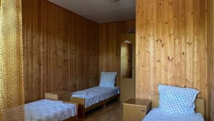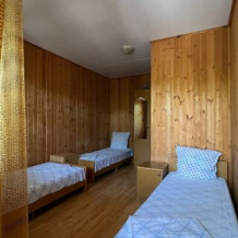 Подходит для размещения 4 человек (3 основных места и 1 дополнительное). Имеет спальню с приятным интерьером. В домике: 3 односпальные кровати. Имеется: балкон, телевизор, кондиционер, шкаф, вешалка, холодильник, стулья. На балконе: стол, стулья. Индивидуальная ванная комната: душ, раковина, туалет. В стоимость входит: Постельное бельё, полотенца, мыло. WI-Fi бесплатно на всей территории. Бесплатная общественная парковка за территорией.