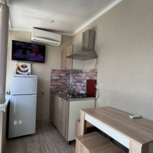 Подходит для размещения 4 человек (4 основных места). Имеет гостиную и спальню с приятным интерьером. В апартаментах: 1 двуспальная кровать, 1 односпальная кровать и 1 диван односпальный. Имеется: телевизор, кондиционер, шкаф, вешалка, зеркало, комод, обеденный и туалетный столик, кухня, посуда, столовые принадлежности, чайник, холодильник, стулья, газовая плита, утюг, гладильная доска. Индивидуальная ванная комната: душ, раковина, туалет.