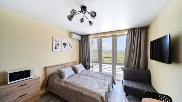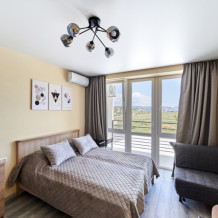 Новые апартаменты с балконом и видом на горы.
