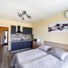 Квартира находится в шаговой доступности от мыса Фиолент и укомплектована всем необходимым для комфортного пребывания. Вмещает до 3-х человек. 2 спальная кровать (160/200) и раскладное кресло. Кухня с техникой и посудой, кондиционер, стиральная машина, фен, утюг, гладилка и сушилка, Wi Fi и Смарт TV. Постельное белье и полотенца на всех гостей.