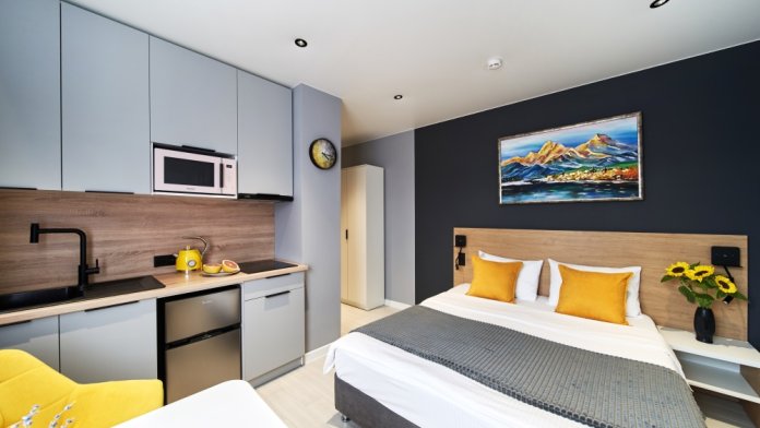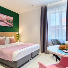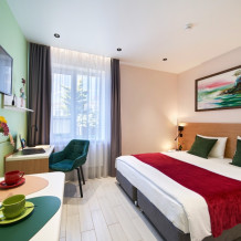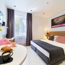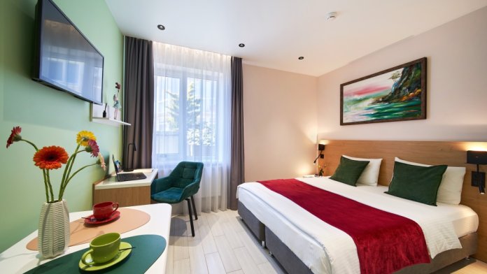 - Удобные рабочие зоны, Smart-TV и бесплатный Wi-Fi.