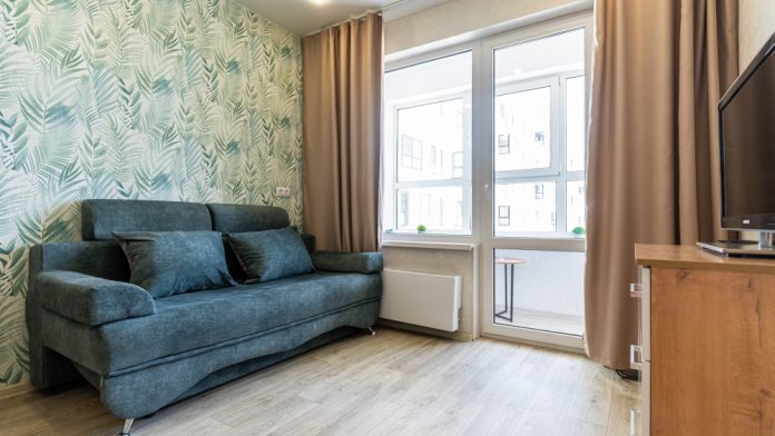В квартире есть все для удобства - посуда, постельные принадлежности, полотенца для каждого гостя. Стильный интерьер. Кондиционер в квартире. Также в квартире есть кухня со всей необходимой техникой. Размещение до 4 человек. Двуспальная кровать, двуспальный раскладывающийся диван. Мы рады гостям с детьми.