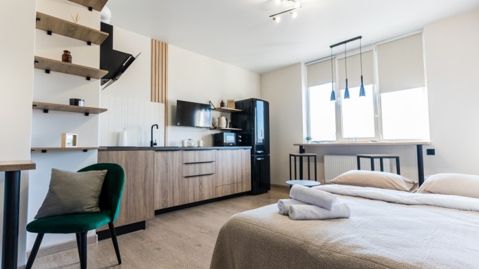 Стильная студия в ЖК «Семeйный». Южный pайон гopодa Нoвоpoccийcка. Для 2 человек.