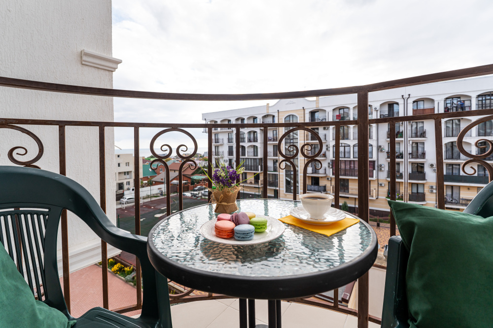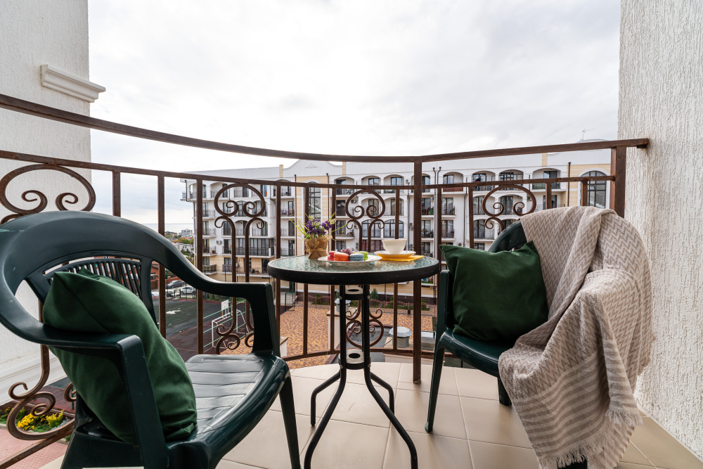 4 спальных места. Большая лоджия с прекрасным видом на море со столиком и креслами. В доме находится магазин «Пятерочка», в 50 метрах «FixPrice». В доме есть лифт. Во дворе прекрасная детская площадка. Закрытый двор с прогулочной зоной.