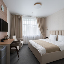 Номер с одной большой или двумя раздельными кроватями на выбор гостя. Окна выходят в тихий внутренний дворик. Оснащен Яндекс станция Алиса с функцией инфоконсьерж, TV управляемое Алисой, wi-fi, кондиционер, сейф, холодильник, гардеробный шкаф, письменный стол, стул, душевая комната, приборы гигиенической косметики, фен, белье премиального качества.