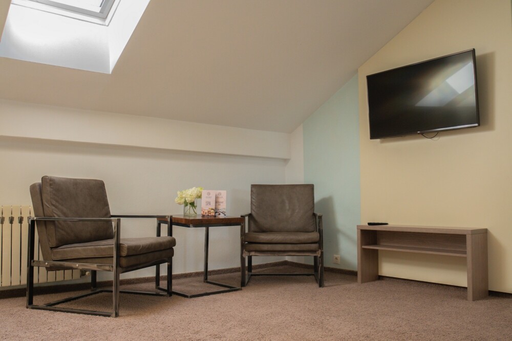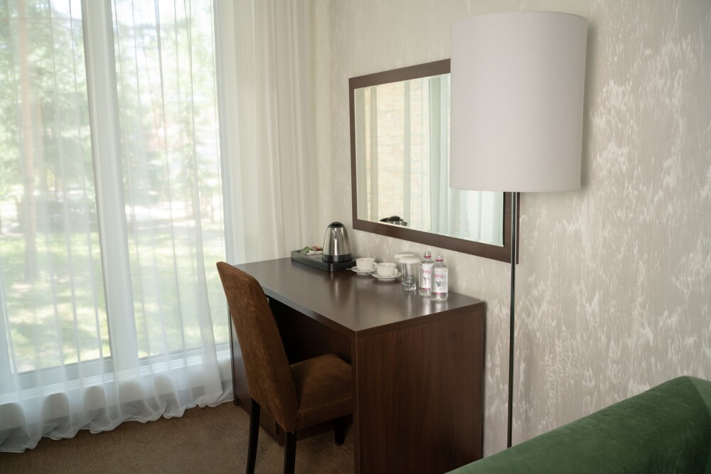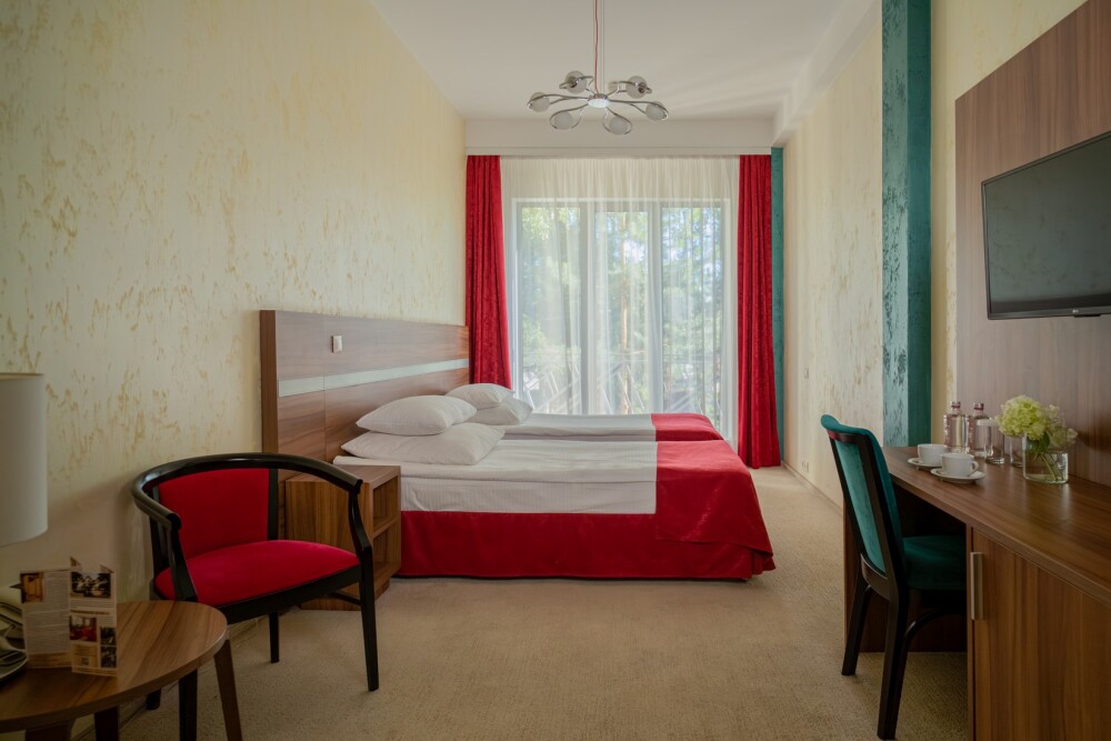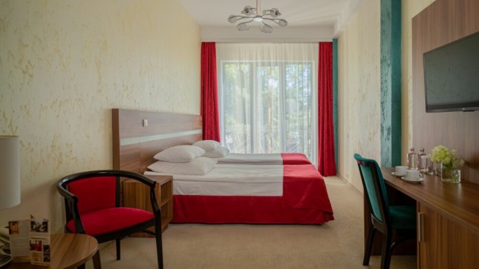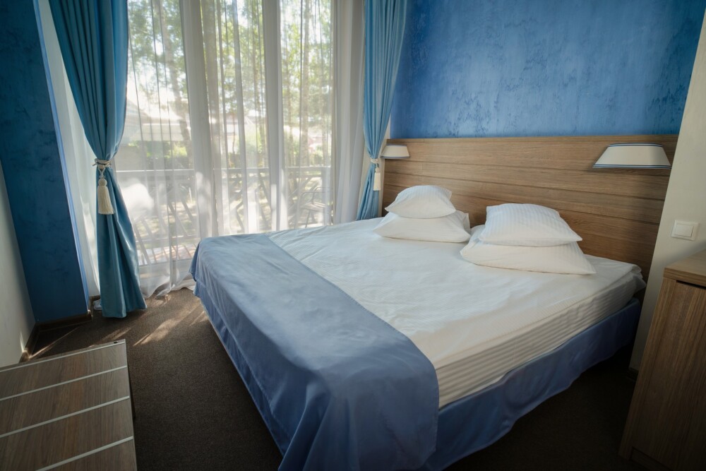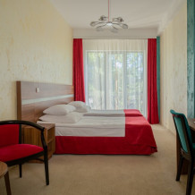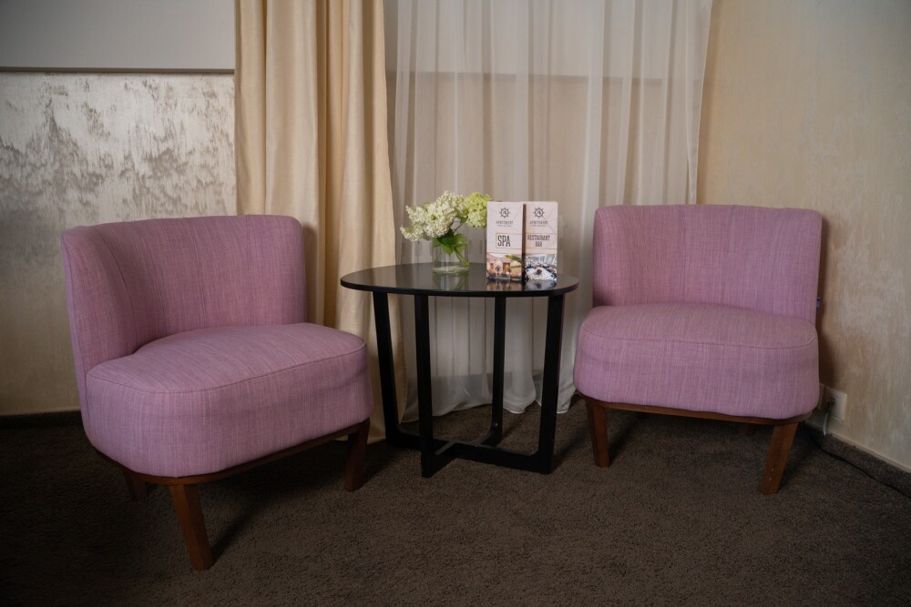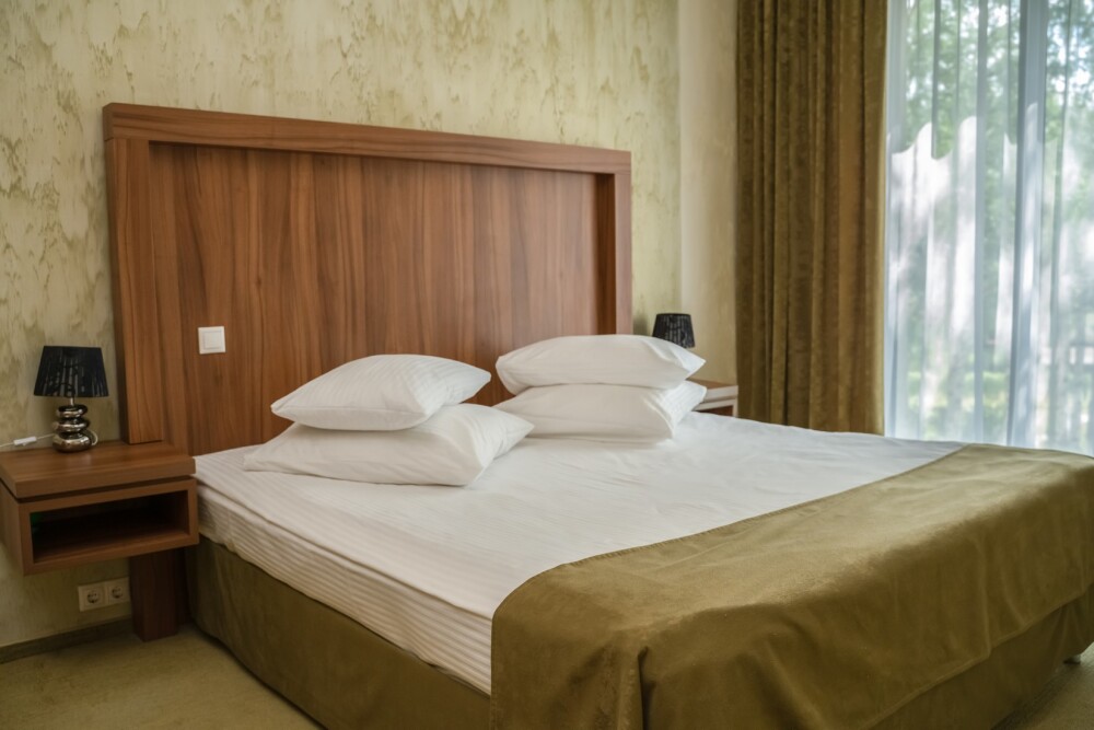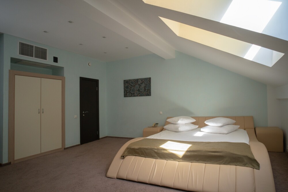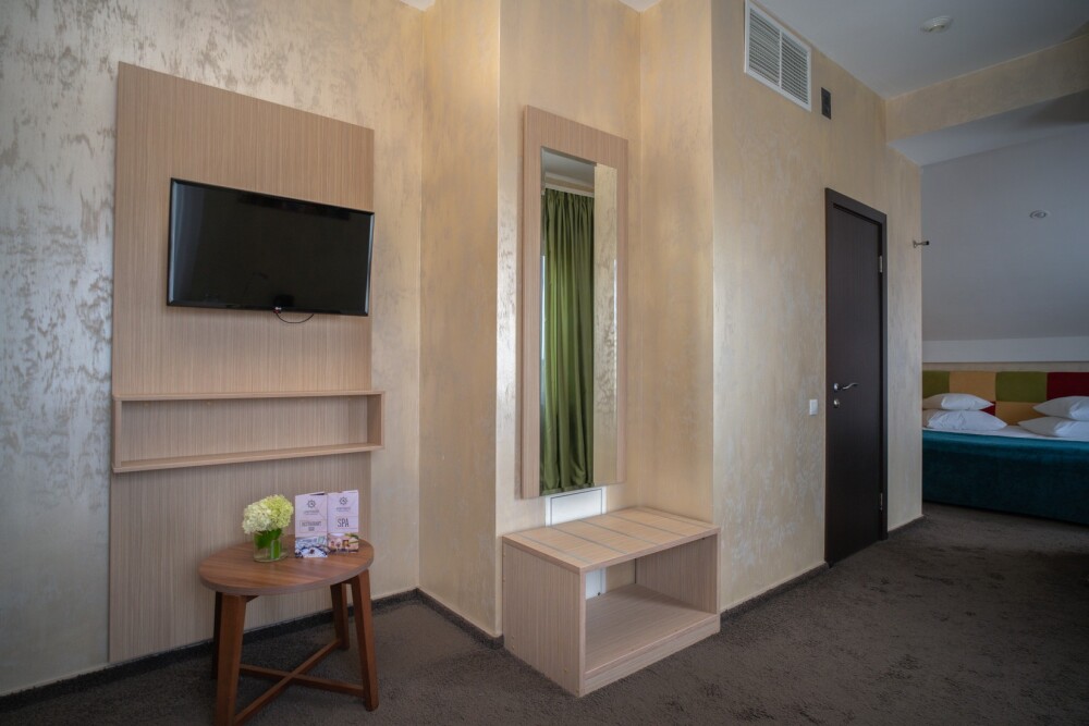 Двухкомнатный номер категории «Люкс» располагает спальню и гостиную с балконом. Подходит для комфортного проживания и оснащен всем необходимым. В стоимость проживания включены:посещение SPA-комплекса Аристократ с бассейном, сухой финской сауной и турецким хамамом, континентальные завтраки,детская площадка,