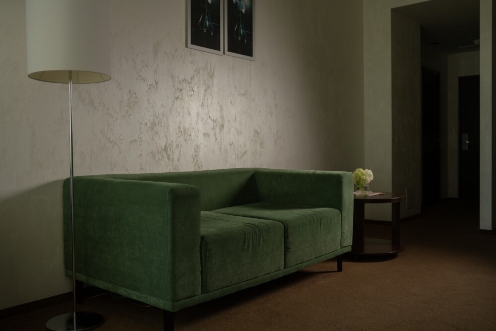 Однокомнатные номера категории «Стандарт» подходят для комфортного размещения 2 гостей и оснащены всем необходимым для проживания: удобными креслами и журнальным столиком, полноценным рабочим местом, шкафом, двуспальной кроватью king-size, телевизором, мини-баром и индивидуальным санузлом (с душевой кабиной).