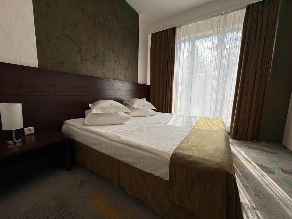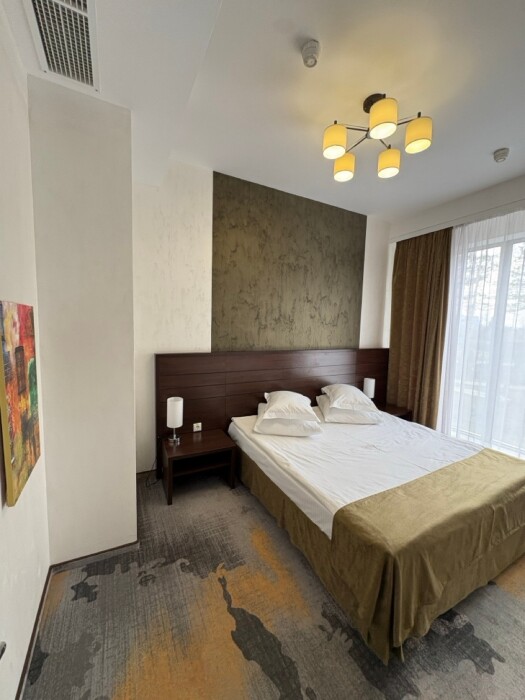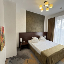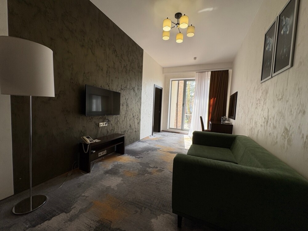 Откройте для себя комфорт и элегантность в двухкомнатном номере категории «Люкс». Это идеальное пространство для отдыха, включает уютную спальню и просторную гостиную с балконом, где вы сможете насладиться свежим воздухом и прекрасным видом на парковую зону.