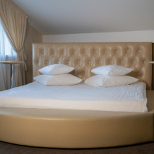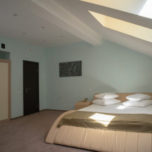 Номер категории «Luxury» подходит для комфортного размещения пар и небольших компаний до 2 человек (возможна организация одного дополнительного места за отдельную плату).Просторный однокомнатный номер с мини-кухней оснащен всем необходимым для проживания: креслами и журнальным столиком, рабочим местом, шкафом, двуспальной кроватью, телевизором, мини-баром и индивидуальным санузлом (с душевой кабиной и ванной). В стоимость проживания включены: посещение SPA-комплекса Аристократ с бассейном, сухой финской сауной и турецким хамамом, завтраки, игровая комната, детская площадка, парковка,Wi-Fi