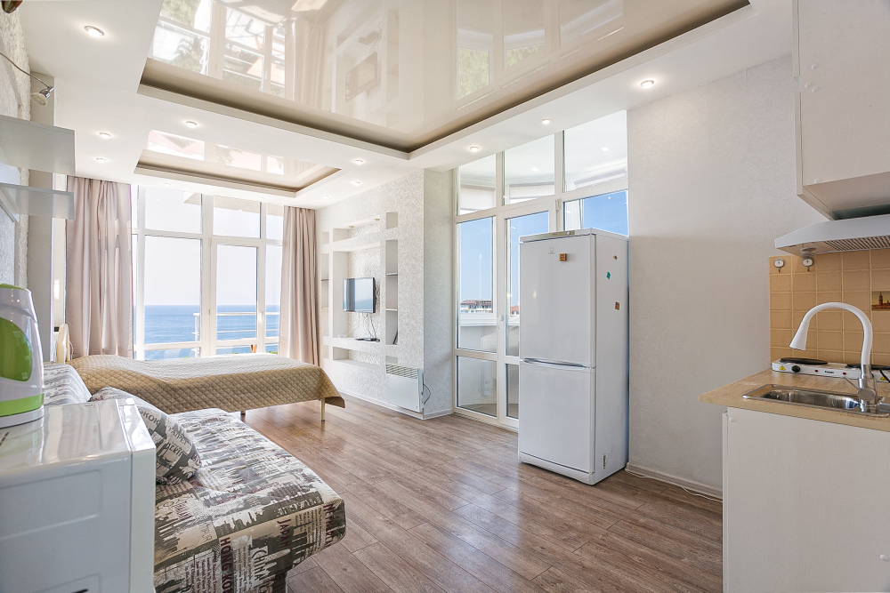 Однокомнатная квартира-студия, имеет абсолютно все для Вашего комфортного отдыха. Шикарный вид на море.
