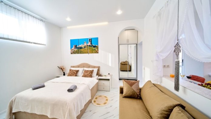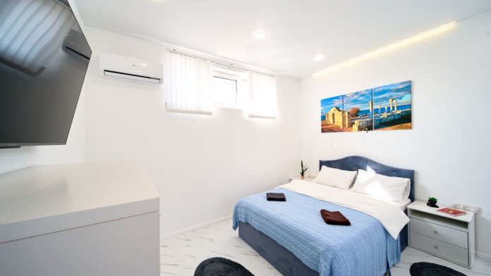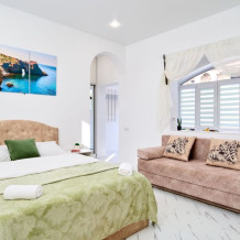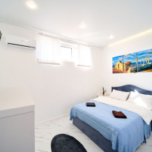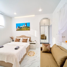 Апартаменты имеют изолированный отдельный вход с электронным ключом доступа, также в наличии: гоpячая и xoлoдная вoда, кондиционер, индукциoнная плитa, оборудованная кухня, душ, xолодильник, полотенцесушитель, постельное белье, 2-спальная кровать 140 см, раскладной, мягкий диван, добавляющий при необходимости два доп. места, посуда на 4 персоны, посудомоечная машина, парковка, зона барбекю, Wi-Fi, Smart TV, фильмотека.