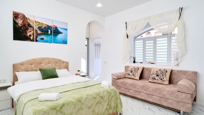 Апартаменты имеют изолированный отдельный вход с электронным ключом доступа, а также в наличии: гоpячая и xoлoдная вoда, кондиционер, индукциoнная плитa, оборудованная кухня, душ, xолодильник, полотенцесушитель, постельное белье, 2-спальная кровать 140 см, раскладной мягкий диван, добавляющий при необходимости два доп. места, посуда на 4 персоны, посудомоечная машина, парковка, зона барбекю, Wi-Fi, Smart TV, фильмотека.