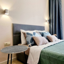 В квартире могут разместиться максимум гостей 5, спальных мест - двуспальная кровать, диван-кровать, кресло-кровать. В квартире-студии есть все для комфортного проживания: панорамные окна в пол с видом на город-много солнца и света, WI-FI 200 мбит/с, Смарт ТВ с подпиской Кион, холодильник, стиральная машина, кондиционер, фен, а также постельное белье, полотенца, кофе, чай и т.д