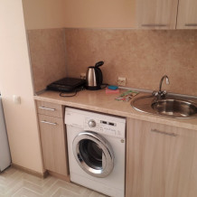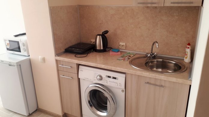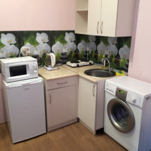 В номере Вас ждут: мини кухня, стиральная машина, душ, чайник, СВЧ-печь, электрическая плита, холодильник, Wi-Fi, кабельное телевидение, LED телевизор, фен, утюг, ортопедические матрасы, платяной шкаф, посуда столовая, чайная и для приготовления пищи, моющие средства, щетка для обуви. Все необходимое для комфортного проживания.
