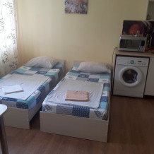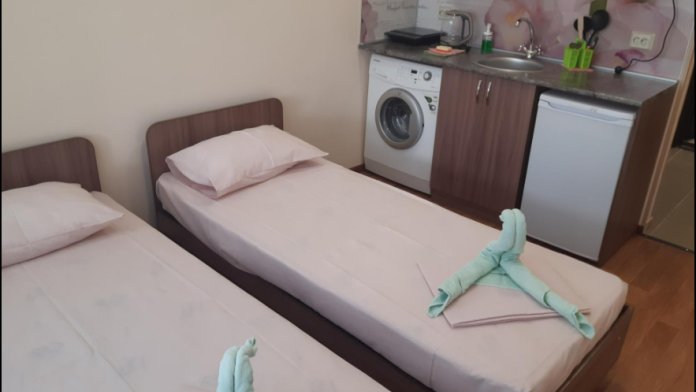 Чистая уютная студия, чистое постельное бельё, полотенца. В номере есть телевизор, кабельное ТВ, Wi-Fi, чайник, холодильник и все необходимое для комфортного проживания. Спальные места: односпальные кровати. Курение в номере запрещено (только балкон и улица).