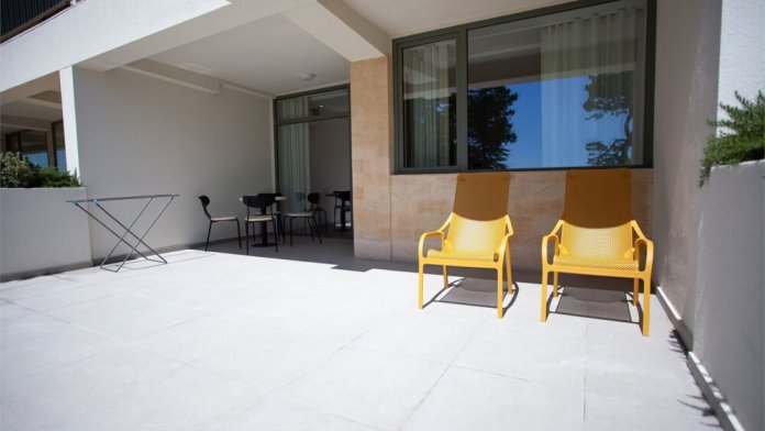 На территории в 3,5 гектара, на первой береговой линии Чёрного моря, расположился четырёхэтажный корпус отеля, с озеленённой территорией, цветущими аллеями и живописными пейзажами.