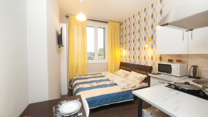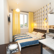 Оснащение: телевизор, кухонная зона , холодильник, электрический чайник, стиральная машина, кондиционер, электрическая плита, фен.