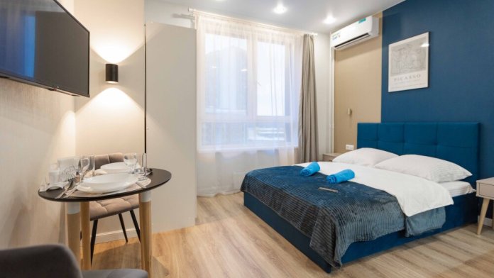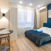 Оснащение: телевизор, кухонная зона , холодильник, электрический чайник, стиральная машина, кондиционер, электрическая плита, фен.