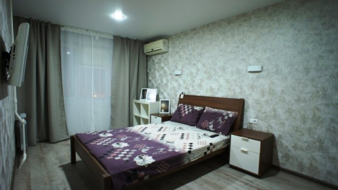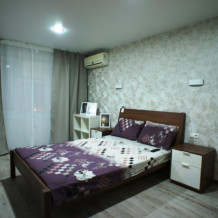 Спальня - двуспальная кровать, две прикроватные тумбы, гардероб, большой телевизор, кондиционер (сплит система).