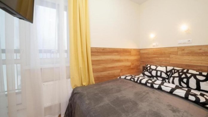 Оснащение: телевизор, кухонная зона, холодильник, электрический чайник, микроволновая печь, электрическая плита, фен.