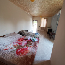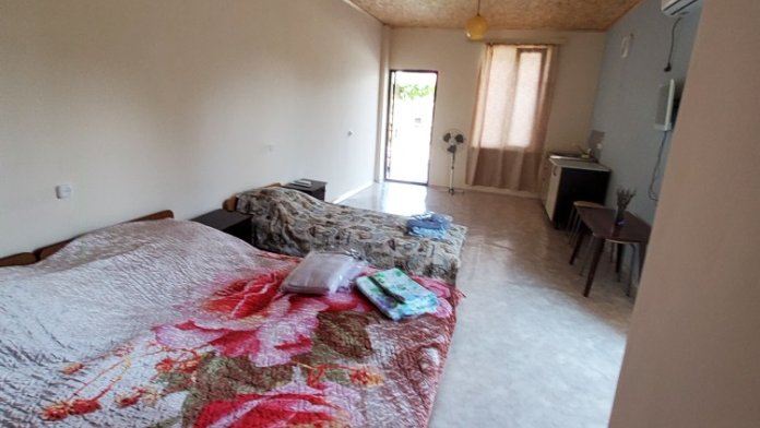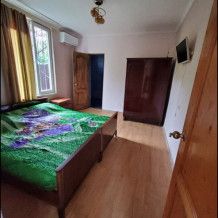 Дом расположен в комфортном районе для отдыха, который имеет название турбазы. В комнате три кровати,шкаф, постельное белье,кондиционер, санузел в номере,