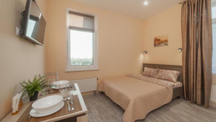 Оснащение: телевизор, кухонная зона, холодильник, электрический чайник, микроволновая печь, электрическая плита, фен.