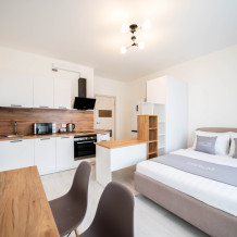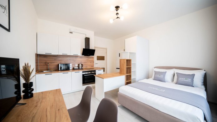 В квартире имеется всё необходимое для Вашего удобства и комфорта. Двуспальная кровать, полностью оборудованная кухня с обеденной зоной, wi-fi и жк-телевизор, белоснежное постельное бельё и махровые полотенца, а также набор ванных принадлежностей.