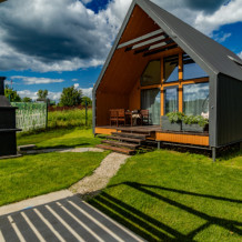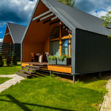 Вокруг наших домиков лес, можно собирать грибы. От детской площадки можно пройти по деревянной дорожке по лесу, к небольшой речке и насладится ее журчанием сидя на террасе с лавочками. Парковка на 18 машиномест.