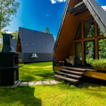 Нa большой территории окруженной лесом, cтоит 4 А-фрейма и 5 Барнхаусов. Одновременно можем принять компанию 50 человек.