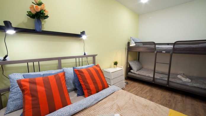 • 1 двуспальная кровать, 1 диван-кровать, 1 двухъярусная кровать