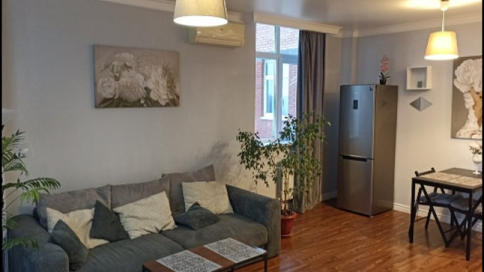 Квартира оснащена всем необходимым для комфортного проживания: сделан хороший ремонт, есть микроволновая печь, варочная плита, сплит-система, холодильник, фен, утюг, двухспальная диван, кухонный стол, вся необходимая посуда.